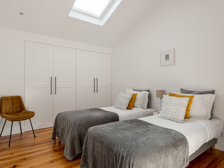 O piso superior é uma espaçosa área aberta que serve como um quarto adicional com uma cama de solteiro, sofá-cama e TV. Das janelas, pode desfrutar de vistas para o castelo. Este espaço versátil é perfeito para crianças mais velhas, dando-lhes a sua própria área para relaxar e brincar.